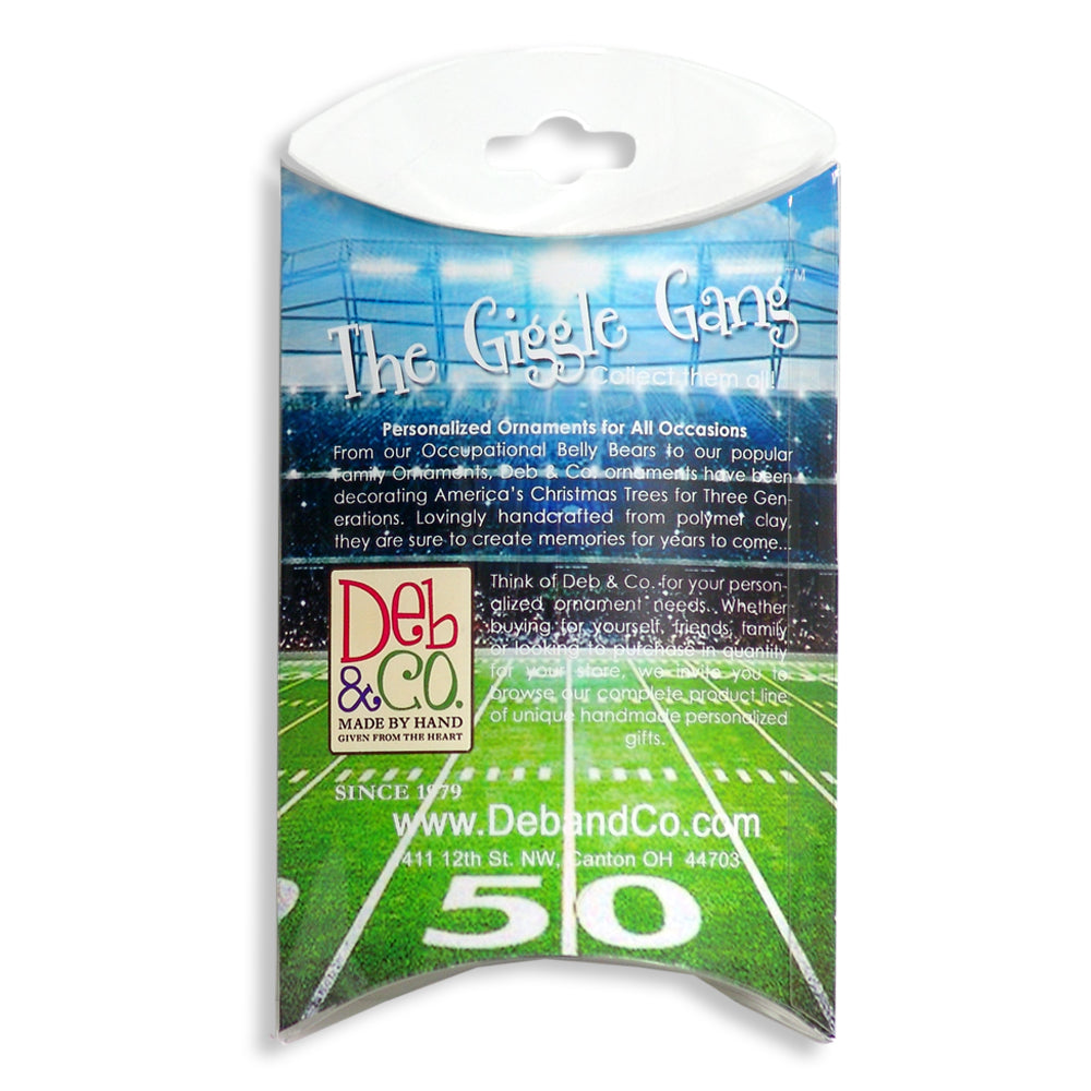 She is one of our sports ornaments and is beautifully detailed with just the right amount of sparkle on her pom-poms. This ornament may be personalized on the star and on the top. This is a great personalized Christmas ornament for any cheerleader on your list.